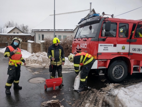 Dne 4. 2. vyjela jednotka s CAS 20 k odstranění nebezpečně nahnuté větve v Kostelní Bříze. VZ si na místo povolal výškovou techniku.